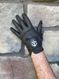 Step 1: First, make sure that all 3 velcro straps are "free" and not suck to the glove. Then, slide the glove on and attach velcro strap 1 over the top of your hand.